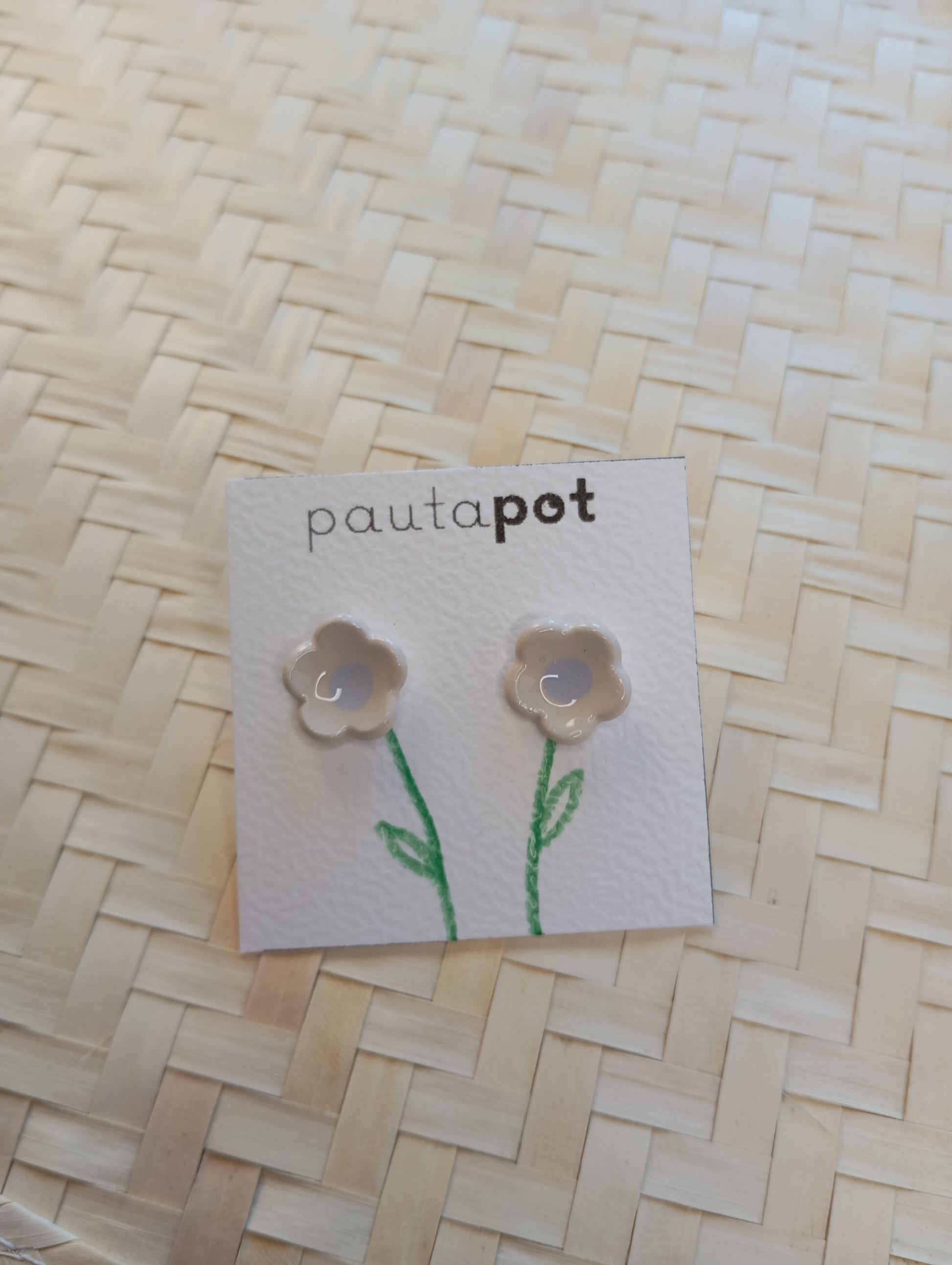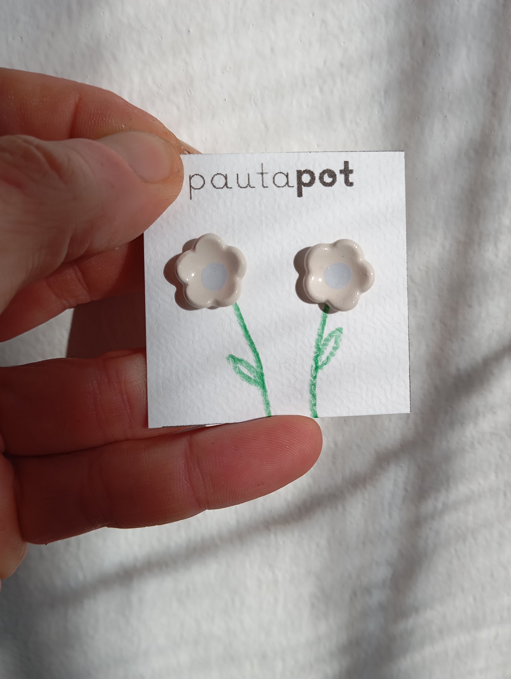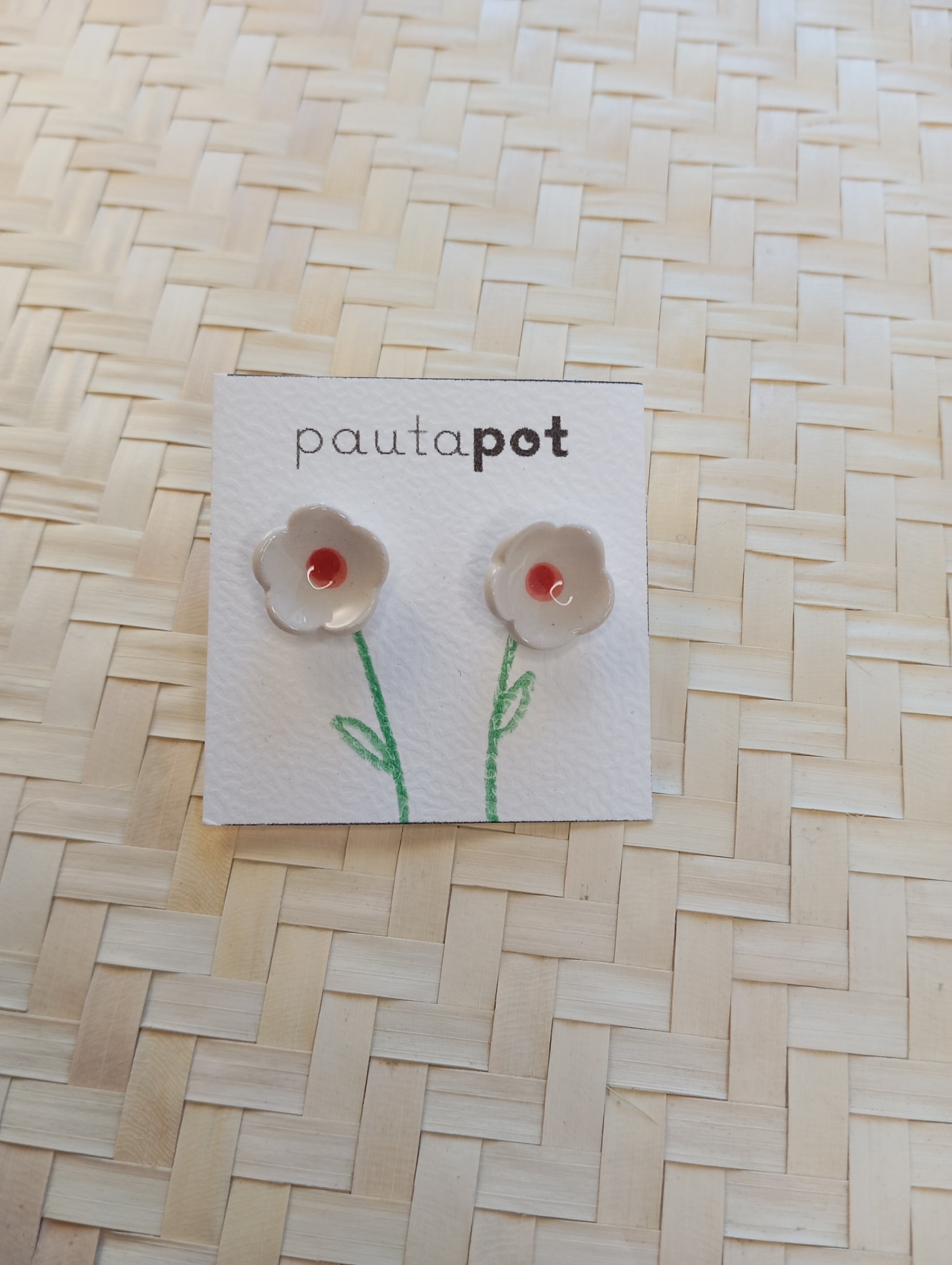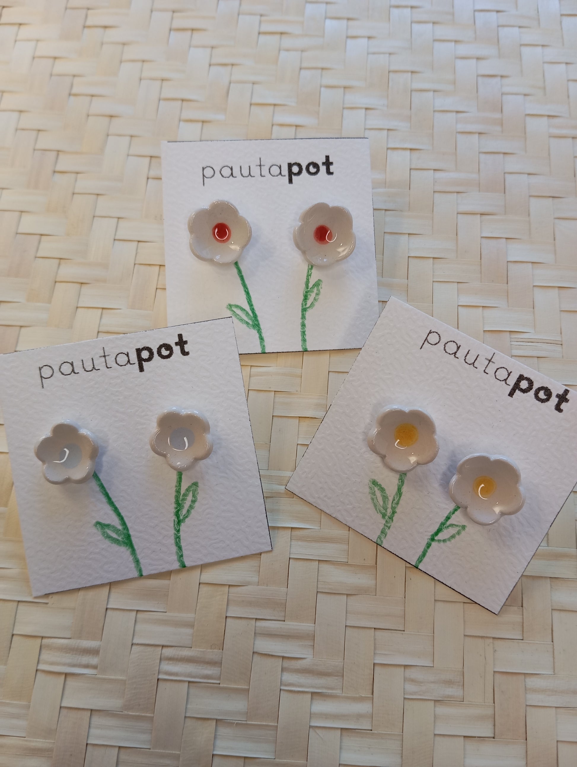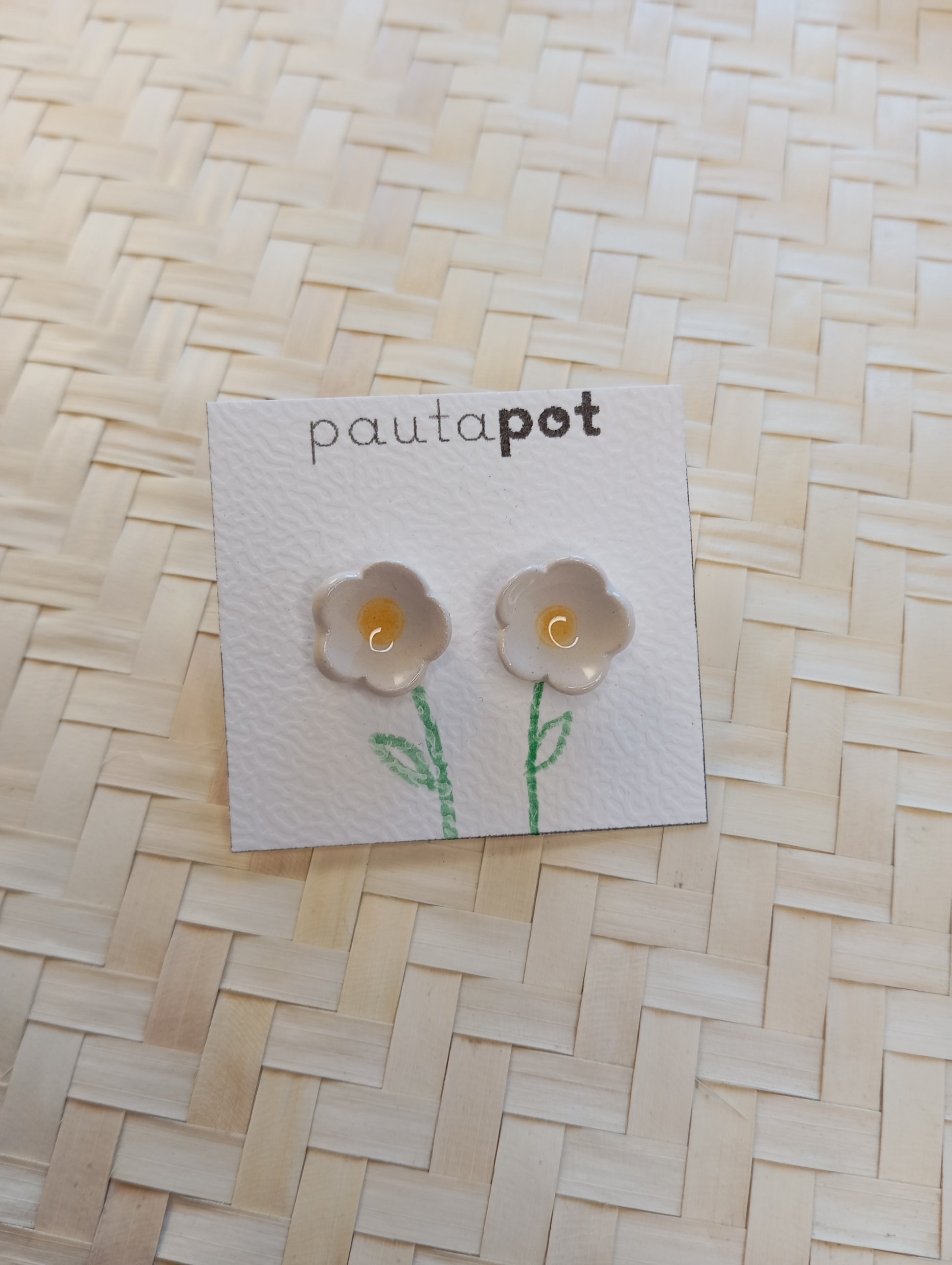 Fatto a mano con cura, ogni coppia di orecchini viene realizzata con argilla bianca, decorata cotta in forno a 980° — ogni pezzo è unico e fatto con amore.